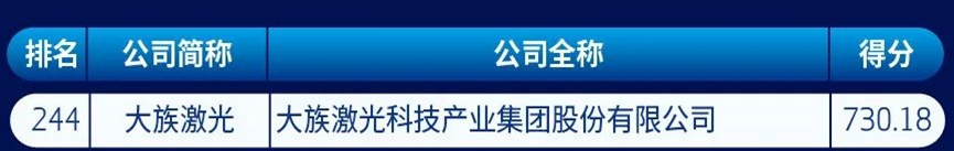 7月23日,中國企業評價協會發布“2021中國新經濟企業500強”榜單。大族激光位列第244位,自2020年榜單首次評選以來蟬聯登榜。