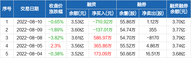 融資方面,當日融資買入1214.67萬元,融資償還1925.58萬元,融資凈償還710.92萬元。融券方面,融券賣出5.44萬股,融券償還4.32萬股,融券余量55.86萬股,融券余額1698.18萬元。融資融券余額合計3.7億元。