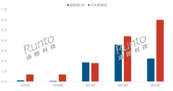 同時,1.5到2K之間的產品向2K以上遷移。2022年上半年,2K流明以上的市場份額為11.7%,較去年上半年增長2.0個百分點。一方面得益于歐司朗光源技術的突破,眾多2K流明以上的旗艦LED產品問世;另一方面則是由于中長焦激光產品的上量。