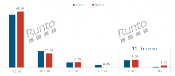2022H1中國智能投影線上市場亮度結構