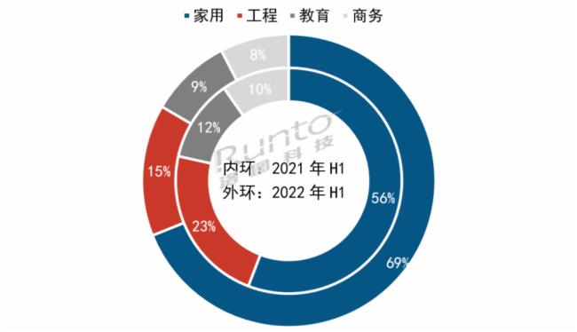激光顯示技術已在家庭娛樂、亮化工程、商教等多個細分市場形成全應用場景覆蓋。特別是家用市場,通過激光電視和激光中長焦形成兩條平行產品線 ,上半年實現了五成以上的增幅,成為整個激光投影市場最強的增長點。工程、教育、商務場景上半年受國內多地散點疫情影響,項目取消或延遲,市場份額受到擠壓,均呈現負增長態勢。