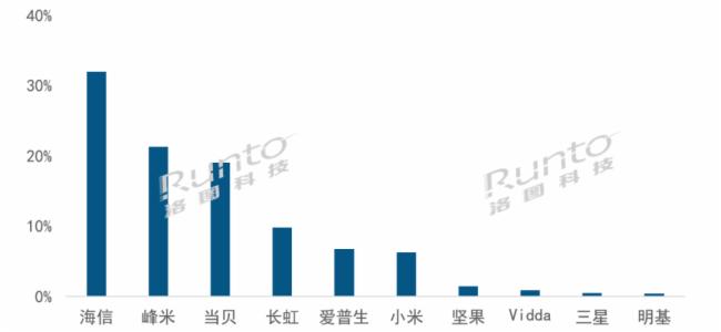 2022H1中國大陸家用激光投影市場出貨量品牌份額(數據來源:洛圖科技(RUNTO), 單位:%)