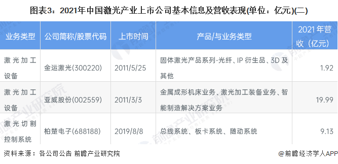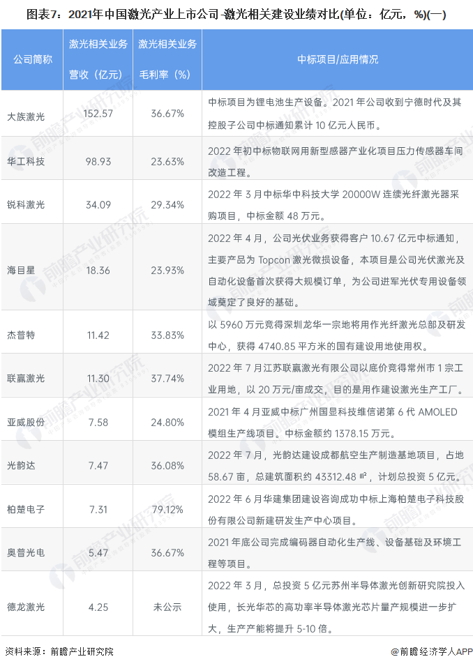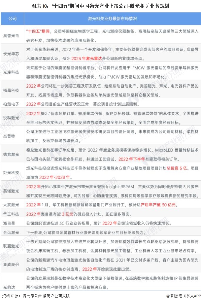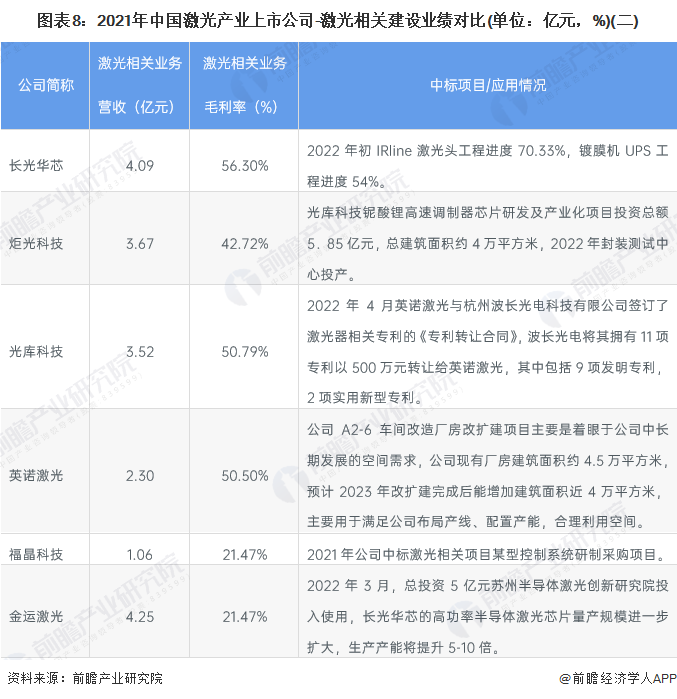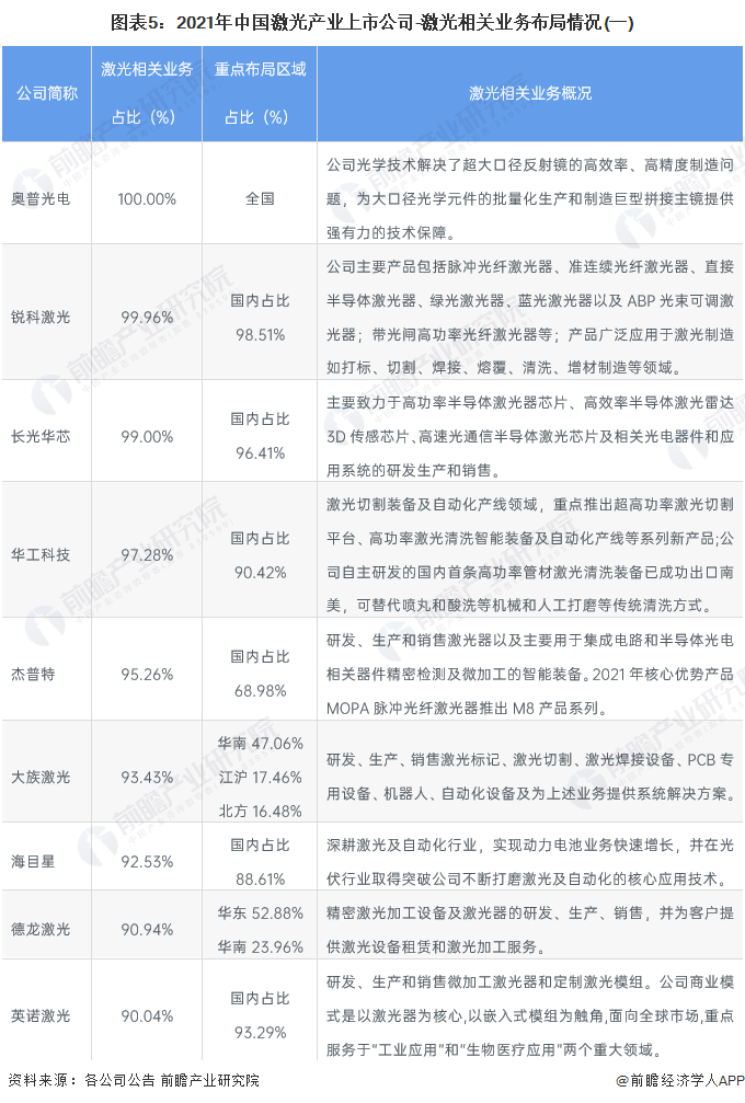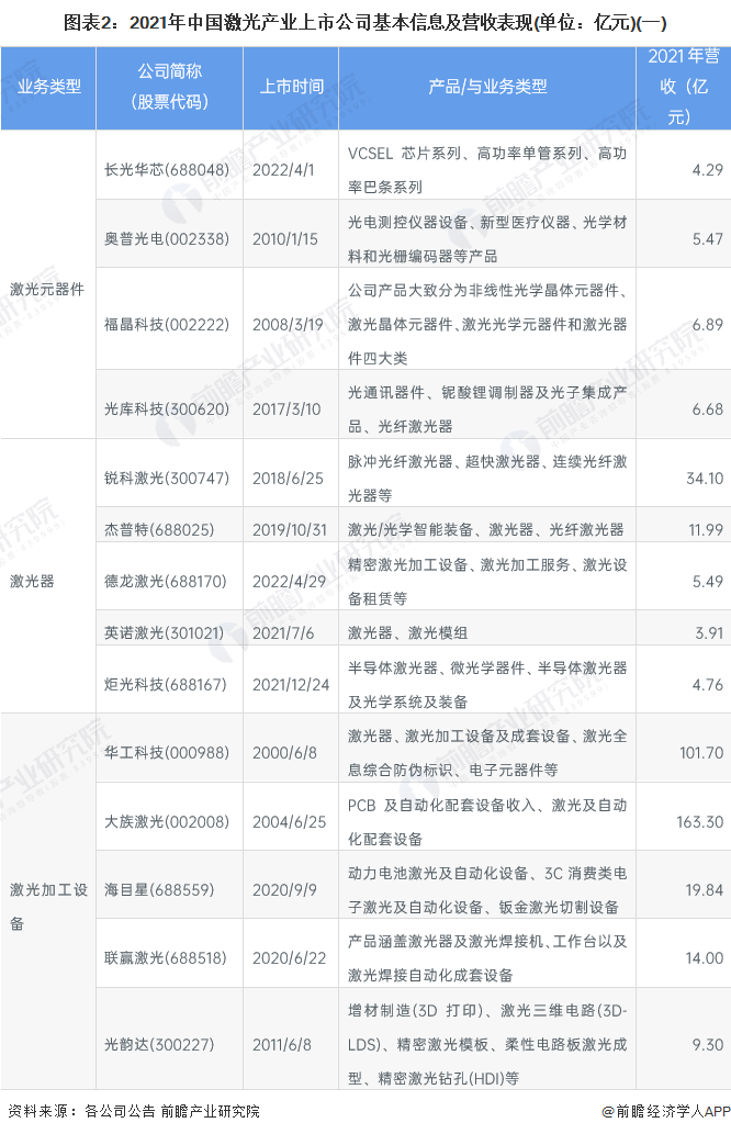 最全!2022年中國激光產業上市公司全方位對比(附業務布局匯總、業績對比、業務規劃等))
