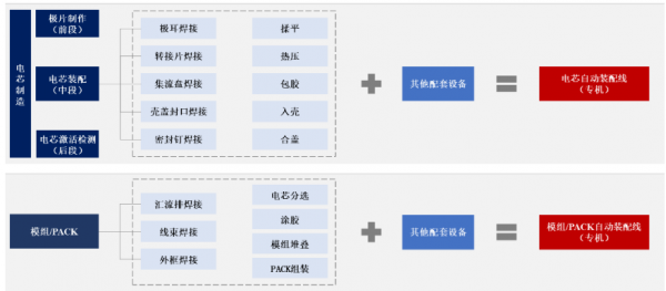 在鋰電池制造領域,目前已廣泛應用激光焊接、激光切割、激光清洗、激光打標等各類激光技術,其中激光焊接的技術壁壘較高,采用激光技術的電池制造工藝,可大幅提升電池安全性、可靠性、一致性,同時提升生產效率、降低制造成本等優勢,已經成為鋰電池制造過程中金屬連接與密封的最優選擇,廣泛應用于極耳、轉接片、集流盤、殼蓋封口、密封釘、匯流排、線束、外框等焊接工序,是鋰電池智能制造不可或缺的關鍵支撐技術。