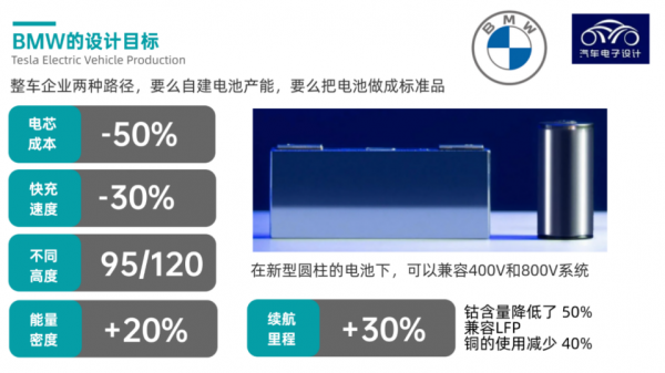 繼特斯拉之后,寶馬集團近日重磅官宣,將從2025年起率先在“新世代”車型中使用圓柱全極耳電池,專為‘新世代’車型電子電氣架構設計的新型圓柱全極耳電池,可以使續航提升高達30%(WLTP),并向寧德時代(300750.SZ)和億緯鋰能(300014.SZ)授予了價值超過百億歐元的電池生產需求合同。而據寶馬方面介紹,與第五代方形電池相比,寶馬第六代電池(大圓柱全極耳)的體積能量密度將提升20%以上,成本可降低50%。