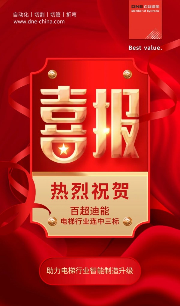 近日,百超迪能喜訊不斷,為金九銀十的黃金期開了一個好頭。瑞士百超集團全資子公司百超迪能激光在奧的斯機電電梯(重慶)有限公司、菱王電梯有限公司、廣日供應鏈管理(四川)有限公司的招標中,歷經(jīng)層層篩選,憑借智能制造系統(tǒng)化方案解決實力、產(chǎn)品品質(zhì)、售后服務等綜合優(yōu)勢,在電梯行業(yè)連中三標。這標志著我司在電梯制造領域又增添了精彩的一筆,也為公司實現(xiàn)高質(zhì)量發(fā)展夯實基礎、積蓄力量。