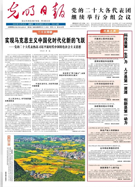 10月20日,光明日報頭版“代表之聲”欄目刊登黨的二十大代表、中國工程物理研究院黨委書記杭義洪談打贏核心技術攻堅戰。【代表之聲】中國工程物理研究院黨委書記杭義洪...