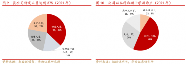 公司憑借專業(yè)的技術(shù)水平打破了外資壟斷的市場格局,積攢了雄厚的技術(shù)實力。2021年公司研發(fā)人員占比達37%,本科和碩士學歷人員占比達70%以上,公司技術(shù)與研發(fā)人員儲備充足,為公司發(fā)展提供持續(xù)動力。