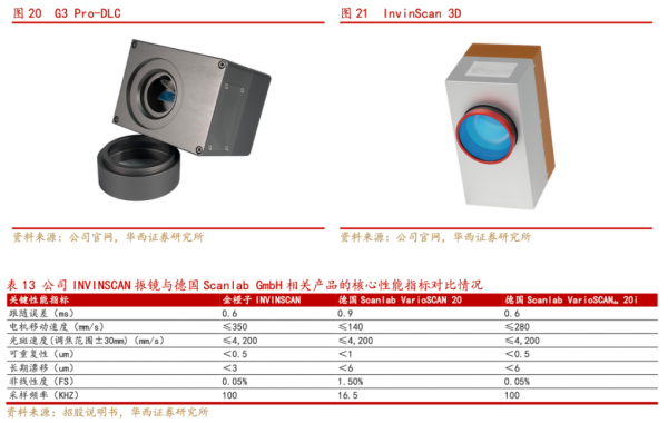 分產(chǎn)品來看:1)G3振鏡包括2D、3D等不同類型的具體型號振鏡,如G3-3D振鏡系3D產(chǎn)品,G3 pro、G3 plus等產(chǎn)品系2D振鏡;2)INVINSCAN振鏡屬于振鏡產(chǎn)品中技術(shù)難度較高的產(chǎn)品,InvinScan 3D 振鏡系統(tǒng)具備高精度、高變焦、小焦斑、全打標幅面內(nèi)光斑高一致性,集成了數(shù)據(jù)采集、數(shù)據(jù)處理、電子控制、機械隨動、光學成像、光學補償、光學掃描等功能。