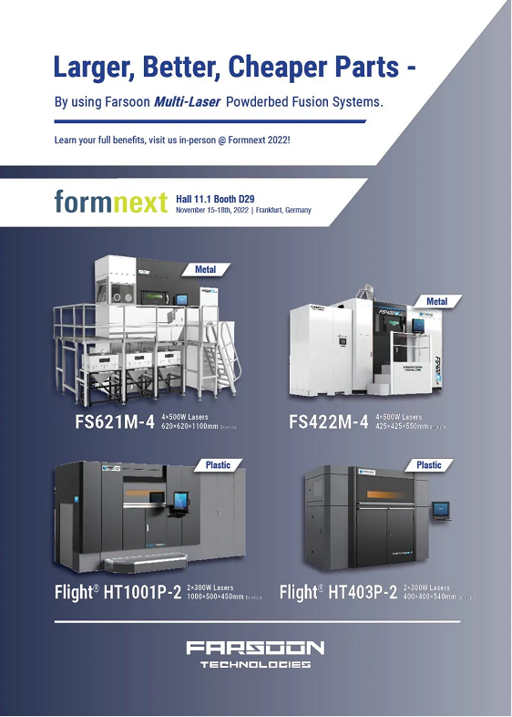 華曙高科始終聚焦產業化客戶對于金屬及高分子增材制造的需求和痛點,包括產能,安全性,效率,和使用便捷性等方面。此次Formnext 2022重磅推薦的4款增材制造解決方案均為中大型尺寸、多激光設備,于2022年5月海外發布后,在歐洲市場引起巨大反響,為全球客戶提供了更大尺寸、更高效率、更優質量的增材制造解決方案: