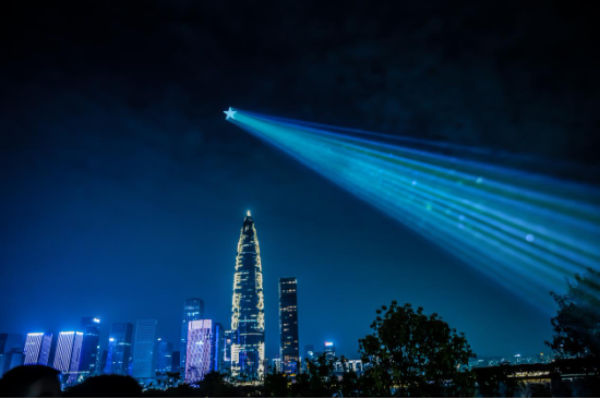 據(jù)悉,光峰科技自主原創(chuàng)和全球首發(fā)的10萬流明激光投影燈,投射距離最遠可達3公里,獨具創(chuàng)造力的讓云層成為投影幕,實現(xiàn)在云層上顯示清晰的畫面,無論是文字還是圖像均可投射,且在投射點方圓幾公里內(nèi)均抬頭清晰可見。