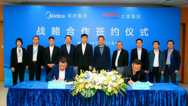 2022年12月8日,美的集團與大族集團在美的總部簽署了戰略合作框架協議。此次簽約,雙方將在工業自動化、制造智能化、樓宇數字化等多個領域開展全面深入的合作,標志著雙方開啟全面深化戰略合作伙伴關系的新篇章。