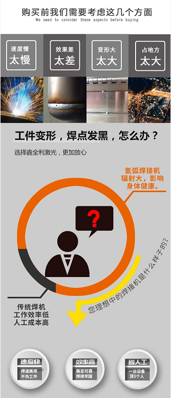 很多不銹鋼產品生產加工都是用的是氬弧焊機和其他的普通焊機,雖然這些可以滿足生產的需要,但是會在焊接的過程中留下焊接的缺陷如:咬邊、未焊透、密集氣孔和裂紋不僅降低接頭的牢固性,而且還會成為縫隙腐蝕的腐蝕源。在焊接的工藝上不僅要焊工的技術有一定的水平,而且對焊接的技巧和焊劑的成本要求過大,會提高生產所需的成本。而且焊后還要進行加工的工作步驟,時間效率非常緩慢。正因為有了這些缺陷的存在,激光焊接機孕育而生!