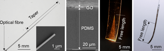 光波導型致動器的材料選擇,一般采用技術相對成熟的普通商用光纖。但商用光纖整體厚度大(直徑多在125微米)、光耦合效率低、能量密度低,導致其變形幅度小、速度慢,無法滿足很多實際應用需求。如果1毫瓦的微弱光線經由100微米以上的光纖傳導至致動器,光的能量密度并不高,且會因為光纖和光響應材料的尺寸不匹配,導致不少能量散失。