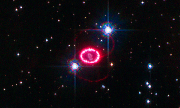 這張來自哈勃太空望遠鏡的 2010 年 NASA 圖像顯示了超新星 1987A 周圍的整個區域。