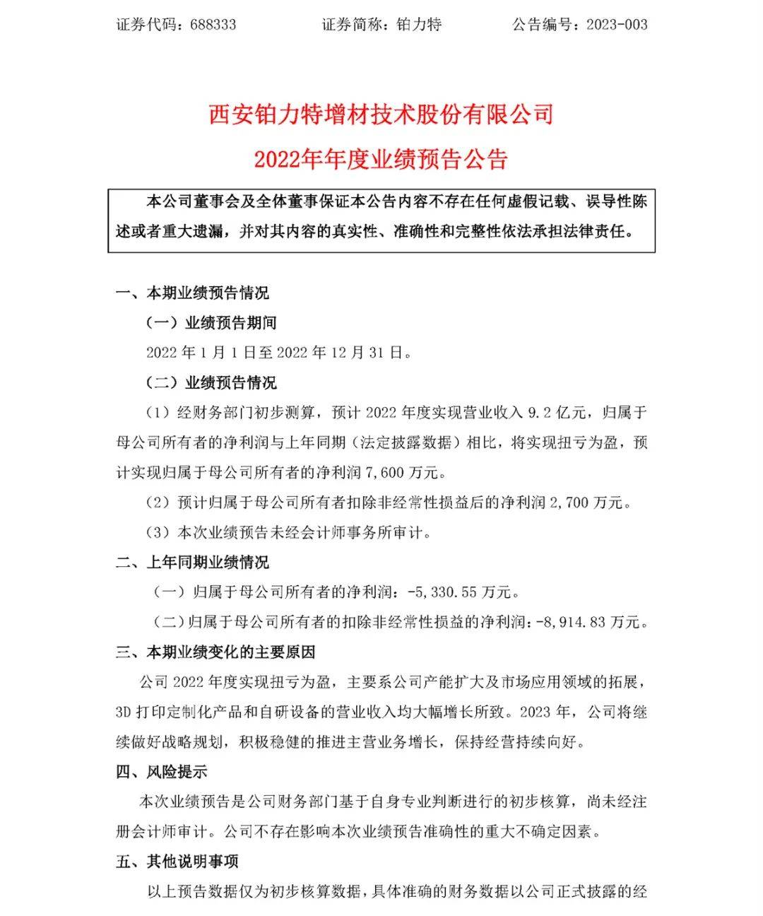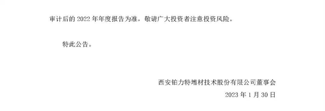 主營金屬3D打印收入9.2億元,勁增66%,鉑力特發(fā)布2022年業(yè)績預(yù)告