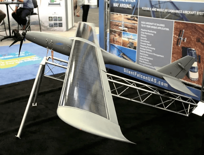 圖 利用電池和太陽能,“沉默獵鷹”無人機可在空中停留6h。美國國防部預研局希望通過激光補充電池來大大延長其任務時間