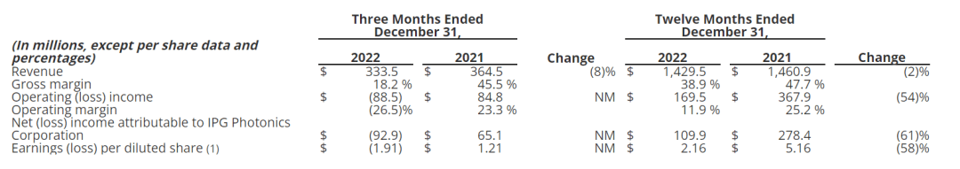 “我們的收入多元化戰(zhàn)略和利用宏觀(guān)趨勢(shì),如電動(dòng)汽車(chē),有助于推動(dòng)今年的收入。產(chǎn)品在電動(dòng)汽車(chē)和醫(yī)療應(yīng)用方面的需求創(chuàng)下了新高。”IPG首席執(zhí)行官Eugene Scherbakov博士說(shuō):"我們達(dá)到了一個(gè)重要的里程碑,焊接應(yīng)用的收入超過(guò)了高功率切割,這得益于激光對(duì)電池制造、工業(yè)焊接和手持焊應(yīng)用的進(jìn)一步滲透。"