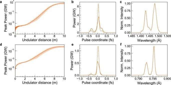 圖4:用Puffin模擬的x射線FEL脈沖產生。