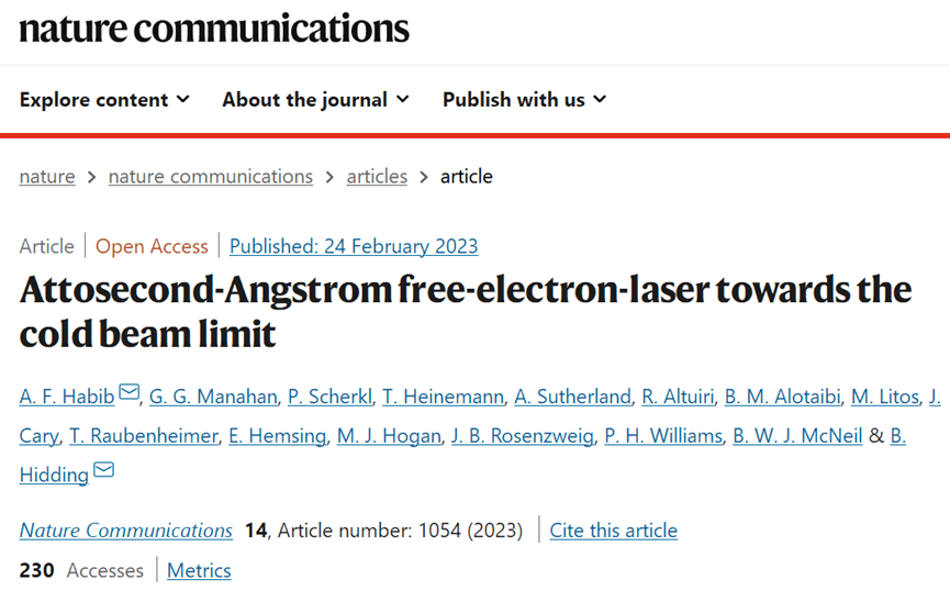 據悉,英國思克萊德大學研究人員對趨于冷束極限的阿秒自由電子激光器的研究以“Attosecond-Angstrom free-electron-laser towards the cold beam limit”為題發表在《Nature Communications》上。