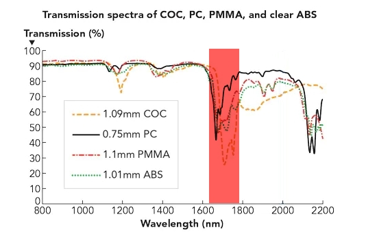 ▲醫用塑料 眾所周知,塑料激光焊接的平均效率已經超過傳統焊接工藝的2~3倍,擁有非常明顯的工藝優勢。而1710nm波長的激光在透明/白色塑料的吸收率上,會高出比它更短波長的激光的幾倍至10倍,能完美的把透明塑料元件焊接在一起,使用更靈活、焊接更美觀,如長光華芯1710nm直接半導體激光器完成一個復雜的塑料焊接工藝只需要短短十幾秒。 小功率,高效率! 透明/白色塑料對1710nm激光有很強的吸收率,從下圖我們能分析出,透明塑料對1710nm激光的吸收率比2μm的光纖激光器效果會更好,且1710nm的激光器輸出光功率并不像808nm和980 nm那樣至少需要100W以上,一般只要幾十瓦的光功率就能夠滿足大部分的應用情況。功率減小,意味著激光器使用成本更低,體積更小,實用性更強。