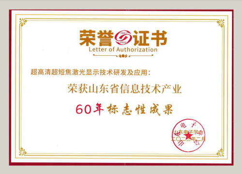 海信激光顯示作為顯示行業領軍企業,憑借強大的綜合實力、持續創新的產品力和高質量的專利積累, 成功入選“山東省信息技術產業60年標志性成果”。近年來,海信激光顯示獲得“山東省科技進步獎”一等獎、“第四屆山東省專利獎”一等獎,入選國家制造業單項冠軍企業,其產業貢獻接連收獲業內認可。