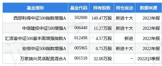 其中持有數量最多的基金為西部利得中證 500 指數增強 A,目前規模為 18.19 億元,最新凈值 1.6131(3 月 10 日),較上一交易日下跌 1.23%,近一年下跌 2.77%。該基金現任基金經理為盛豐衍 陳元驊。以上內容由證券之星根據公開信息整理,與本站立場無關。證券之星力求但不保證該信息(包括但不限于文字、視頻、音頻、數據及圖表)全部或者部分內容的的準確性、完整性、有效性、及時性等,如存在問題請聯系我們。本文為數據整理,不對您構成任何投資建議,投資有風險,請謹慎決策。