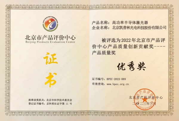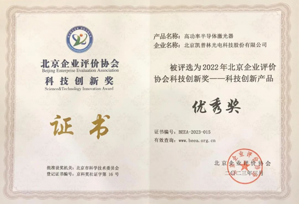 3月31日,北京企業評價協會公布了2022年科技創新獎獲獎名單,凱普林光電憑借在激光領域突出的創新能力及創新成果喜提3項大獎。其中,凱普林高功率半導體激光器獲評 “科...