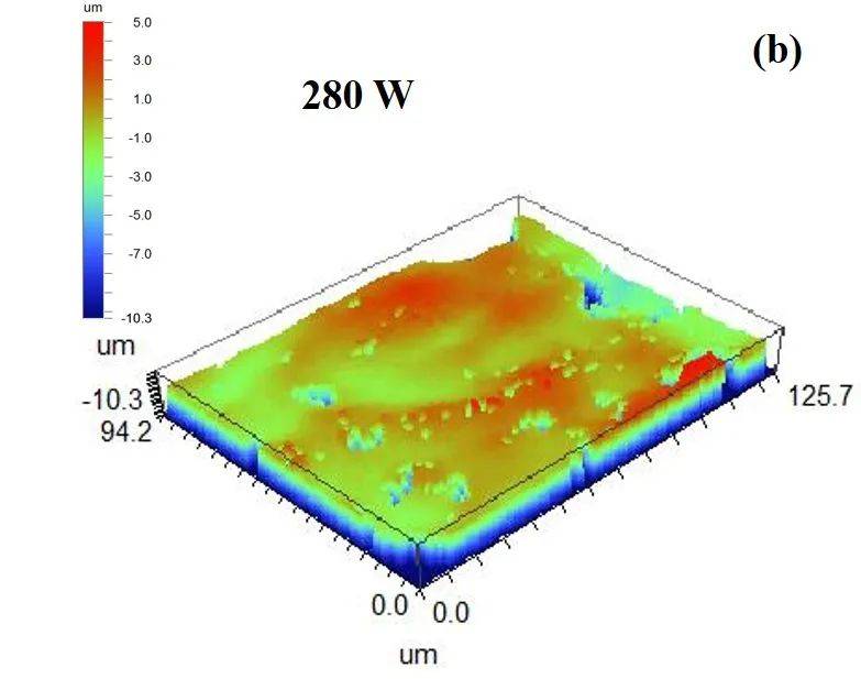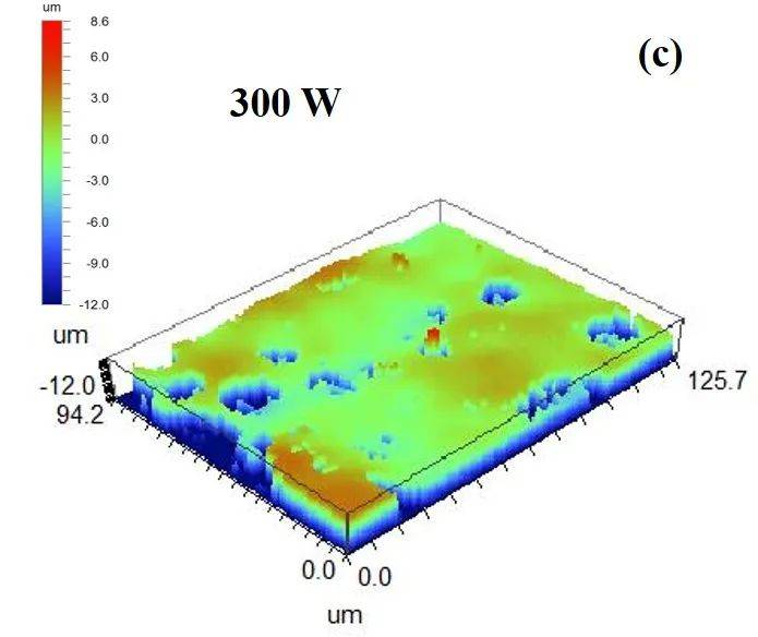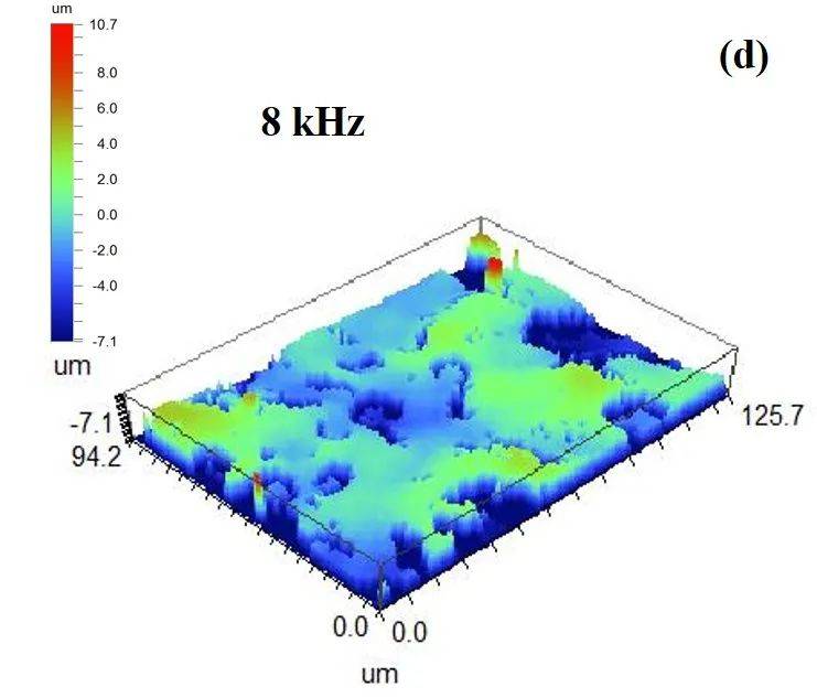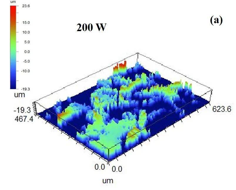 圖10腐蝕樣件激光清洗后的3D形貌(a)200W;(b)280W;(c)300W;(d)8kHz;