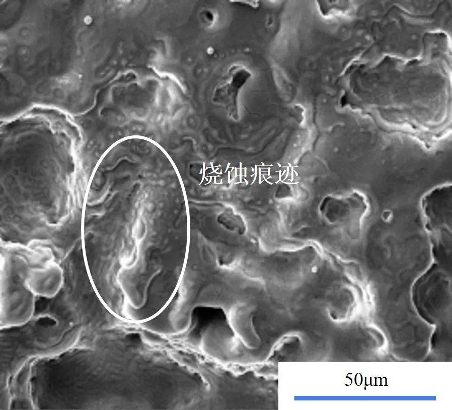 實際清洗過程中,當材料表面氧化物達到一定溫度時,其表面會出現明顯的燒蝕痕跡,即發生物相之間的轉變:固體-液體-固體,如圖2所示,證明該機理在清洗過程中起主要作用。