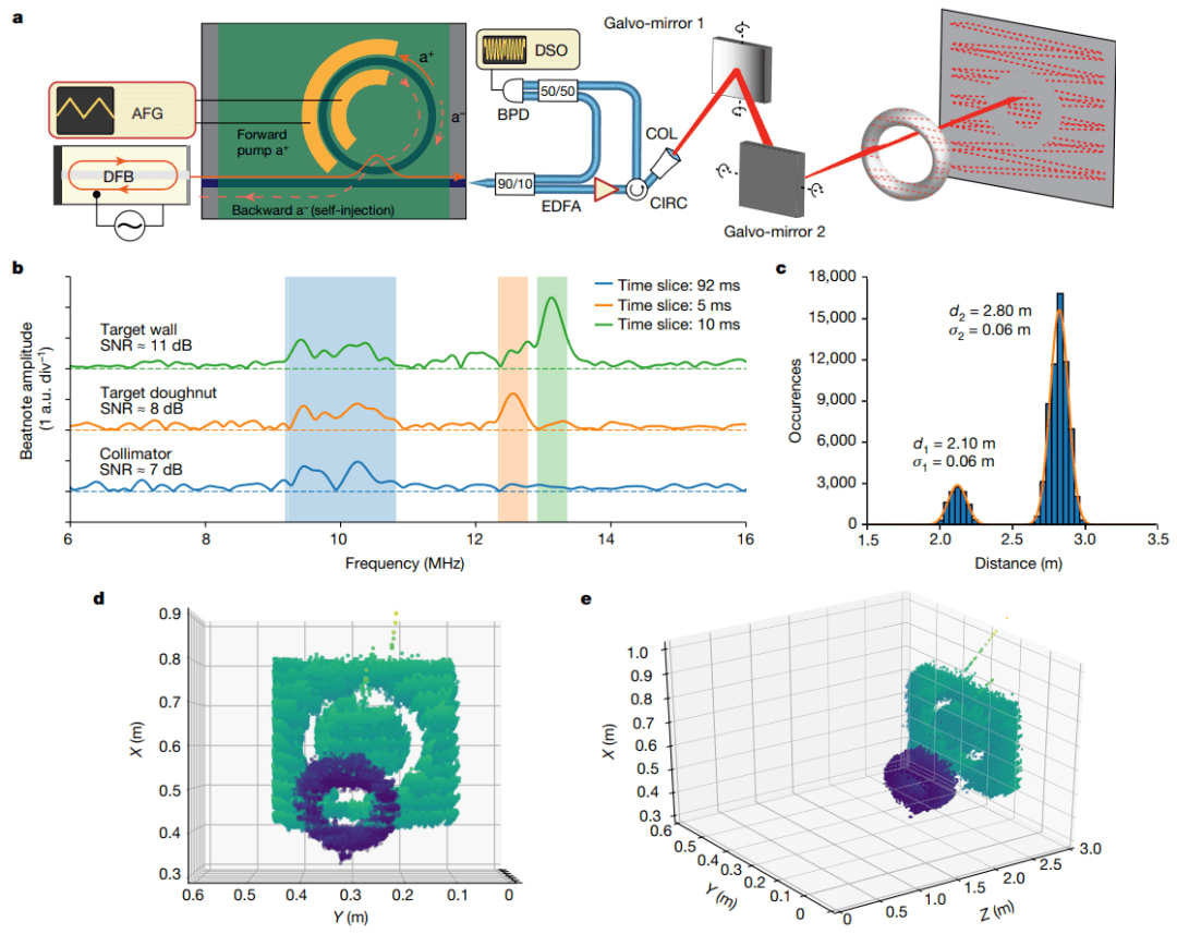 近日,來自IBM和瑞士洛桑聯(lián)邦理工學(xué)院(EPFL)的研究團(tuán)隊(duì)在Nature上發(fā)文,報(bào)道了一種基于混合氮化硅Si3N4–LiNbO3光子平臺(tái)的快速調(diào)諧激光器,并展示了其在相干激光測(cè)距中的應(yīng)用,可能對(duì)光學(xué)測(cè)距技術(shù)產(chǎn)生重大影響。該激光器基于鈮酸鋰,由于其低噪聲和快速波長調(diào)諧的特性,有可能徹底改變光探測(cè)和測(cè)距(LiDAR)應(yīng)用。