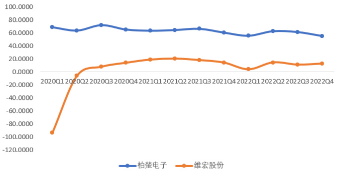 從毛利率來看,柏楚電子>維宏股份。主要由于業務結構不同所致,柏楚電子主營激光切割控制系統,涵蓋中低高功率,毛利率較高,而維宏股份主營雕刻雕銑切割控制系統,激光切割控制系統占比較低,且目前只涵蓋中低功率,毛利率較低。