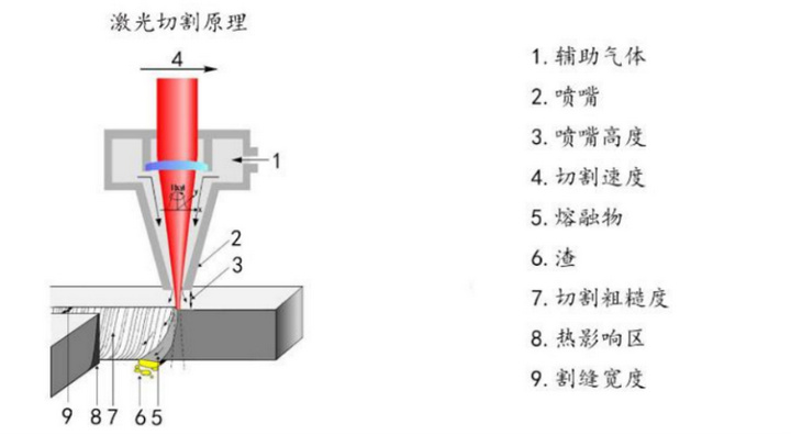 (一)激光切割的基本原理,簡單來說,就是用激光束將材料局部加熱至超過熔點,然后用高壓氣體或蒸汽,將熔融的金屬吹離,從而形成一個非常窄的切口,并隨著激光束與材料相對移動,依次切割形成孔洞。