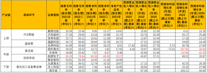 從成長性來看,上游激光器預期增長率較高,主要是激光器受到國內新能源市場高景氣度影響,需求不斷提升,且國產替代進程加快。