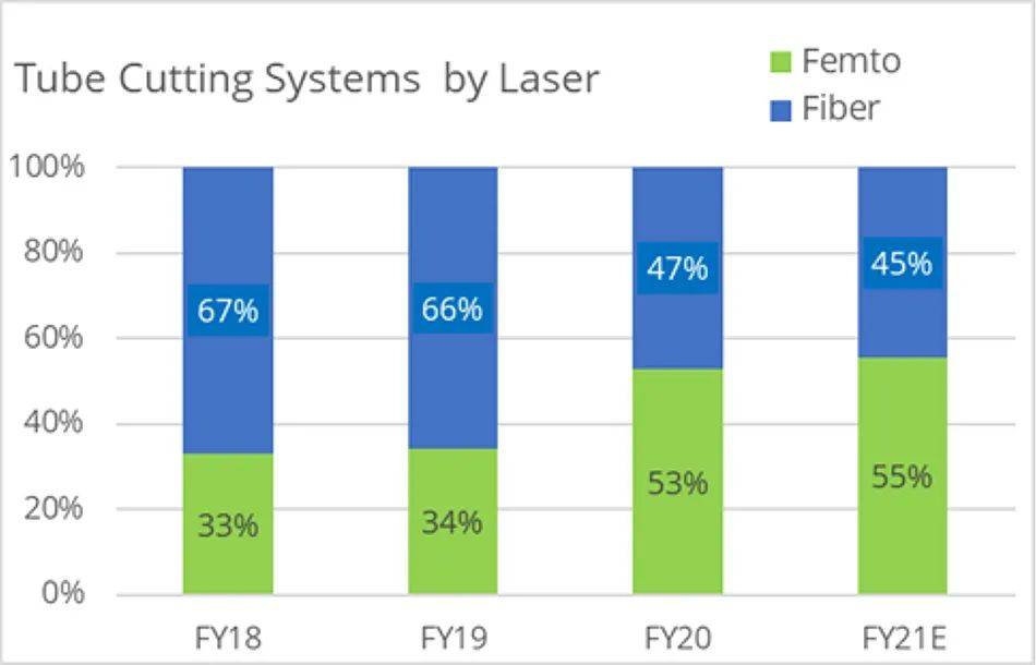 圖1.基于光纖激光器和飛秒激光器的Coherent管材切割系統的相對系統收入