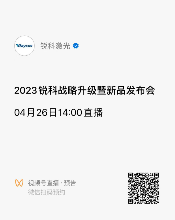 2023年4月26日下午 14:00-15:00,武漢銳科光纖激光技術股份有限公司(以下簡稱“銳科激光”)將舉辦“創變·謀遠 ——2023銳科激光戰略升級暨新品發布會”。屆時,銳科激光視頻號、抖音號及各大合作媒體將對此次活動進行全程直播,期間銳科激光將推出多款重磅激光新品,并闡述公司在戰略升級方面的規劃。