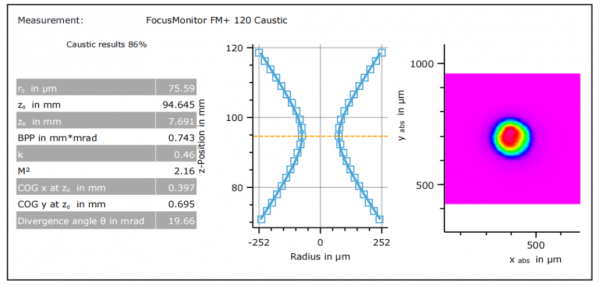 光束質量M2,反映了光束在光學系統中的聚焦程度及傳輸過程中的合焦程度。M2越小,光束聚焦度越高,能量密度越大,光束質量越好。