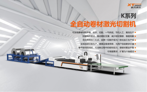 據介紹,新天激光K系列-全自動卷材激光切割機可實現裸卷材料開卷、校平、切割,一氣呵成,節約人工,高效生產。這款設備可以將金屬材料的開卷、校平、切割、下料結合為一體,從整卷材料的進料、傳輸、切割和下料全部實現自動化,充分保證了材料加工的高質量、高效率和節約人力資源等特點,將智能機械與人之間相互融合,既滿足柔性的高效生產,又可縮短企業的生產周期,讓企業更具市場競爭力。