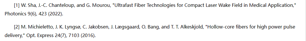 總之,快速發展的超快光纖激光技術能夠為LWFA提供千兆瓦峰值功率的飛秒脈沖,空芯光纖則可以傳輸這樣的超短超強脈沖。這兩種技術相結合,有望在將來實現基于高密度LWFA的內窺鏡癌癥治療。