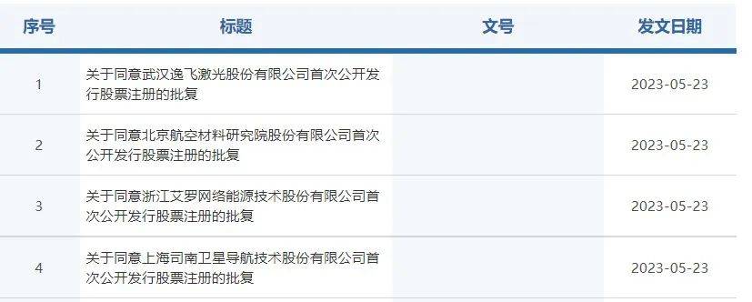 5月23日,證監(jiān)會發(fā)布關(guān)于同意聯(lián)盟單位武漢逸飛激光股份有限公司(逸飛激光)、北京航空材料研究院股份有限公司(航材股份)、浙江艾羅網(wǎng)絡(luò)能源技術(shù)股份有限公司(艾羅能源)、上海司南衛(wèi)星導航技術(shù)股份有限公司(司南導航)首次公開發(fā)行股票注冊的批復。證監(jiān)會同意上述公司科創(chuàng)板上市的注冊申請。
