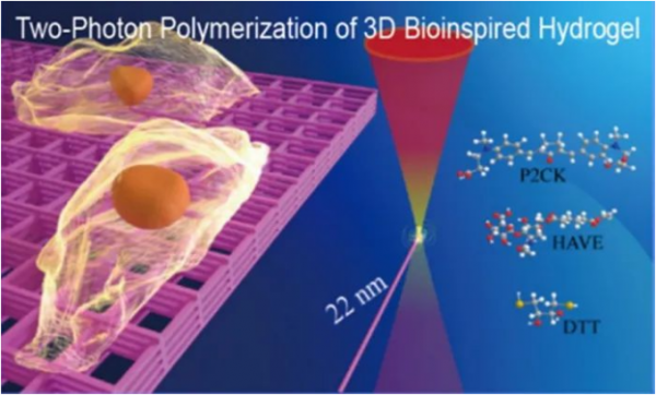 水凝膠具有類似于細胞外基質的理化性質,具備良好力學性能、自愈合能力和響應性,可以用于構建組織再生的微納米仿生結構,并提供微米尺度的表面形態來調節細胞行為,如細胞粘附、遷移或生存增殖分化因子的釋放。因此,水凝膠被廣泛應用于組織工程和藥物遞送等領域。然而,制備高精度的三維(3D)任意生物相容性水凝膠支架仍然是一個挑戰。為了適應未來生物醫學領域的發展,開發具有精細3D幾何結構的新型水凝膠材料勢在必行。