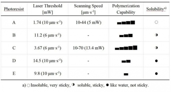 圖3 HAVE前驅體C配方雙光子聚合性能研究