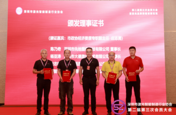 中國工程院院士范滇元,深圳市政協經濟委原專職副主任莊智勇,深圳市激光智能制造行業協會會長、深圳光韻達光電科技股份有限公司董事長侯若洪,深圳市激光智能制造行業協會名譽會長陳焱,廣東省激光行業協會會長、深圳市杰普特光電股份有限公司董事長黃治家,深圳市激光智能制造行業協會秘書長邵火等領導和嘉賓出席了當天的大會。深圳市激光智能制造行業協會邵火秘書長作協會2022年度工作報告深圳市激光智能制造行業協會侯若洪會長作協會未來工作計劃報告據了解,深圳市激光智能制造行業協會自2017年5月成立,經過六年的發展,協會已經成功舉辦了多場激光展覽、論壇等活動,會員數量也逐年增加,協會發展日趨壯大。六年來,協會積極服務會員企業,規范協調會員企業,維護會員合法權益,積極搭建政府與企業的橋梁和紐帶,通過各會員單位的努力,提高了協會在行業中的地位和作用,擴大了協會在行業中的影響力。未來,協會將積極推廣智能制造技術,團結激光行業內上、中、下游的優質企業,參與產業鏈技術發展,引導深圳激光及智能制造行業良性發展,構建合作共贏的激光生態圈,推動激光技術創新、產業發展和應用推廣,助力深圳打造“寶安區千億激光+產業集群”,為深圳的高質量發展發揮協會力量。根據大會議程,經大會表決通過,免去個別副會長、理事資格。在當天的會員大會上,經大會表決通過,增補了部分副會長、理事資格。經大會表決通過,深圳市星之球信息科技有限公司副董事長邵火、光越科技(深圳)有限公司總經理龍躍金、深圳水滴激光科技有限公司總經理金陽、大族激光智能裝備集團有限公司總經理胡瑞、深圳市青虹激光科技有限公司董事長趙彥君、深圳市萬順興科技有限公司總經理韋忠斌等增補為協會副會長。大會上,中國工程院院士范滇元為新晉副會長頒發榮譽證書。經大會表決通過,深圳市大德激光技術有限公司董事長楊亞濤,深圳市先地圖像科技有限公司董事長陳乃奇,深圳嘉強激光技術有限公司總經理史忠明,深圳市智博泰克科技有限公司聯合創始人、董事楊智明等為協會新晉理事。深圳市激光智能制造行業協會會長侯若洪為新晉(增補)理事頒發榮譽證書。九禾智方品牌策劃機構董事長、聯合創始人王德永,作主題為《品牌建設與營銷的買點思維》的主題演講;北京大學知識產權法專業律師、副研究員、知識產權運營專家賈振勇,作主題為《如何善用專利情報助力激光行業研發創新》的主題演講。大會上,江門市新會區舉行了主題為“新啟大橋時代,會見智造未來”的營商環境推介。江門市新會區駐深圳投資促進中心副主任梁瑞文對新會的區位優勢、產業基礎、產業方向、扶持政策、營商服務等作了重點介紹。他還誠意邀請深圳的激光企業到新會參觀考察、投資置業,“我們在啟超故里、鳥的天堂,沖好陳年陳皮茶等著您。”