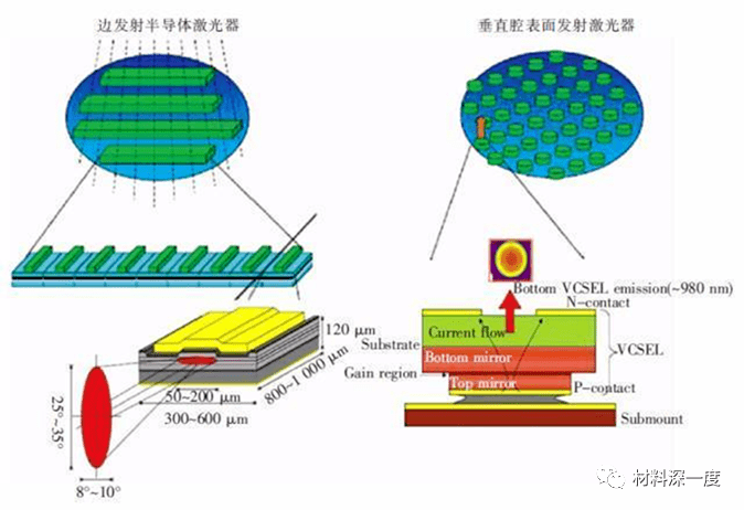 根據(jù)激光投影的方向,半導(dǎo)體激光器可以分為兩類型:邊發(fā)射激光器(EEL)和垂直腔面發(fā)射激光器(VCSEL)。