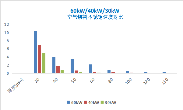 圖10 60kW/40kW/30kW不銹鋼切割速度對比