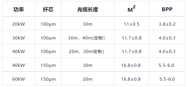 我們從20kW—60kW限定推出100μm—150μm纖芯輸出,并嚴格限制M2范圍,使得切割工藝的調整可以從低功率到高功率切割工藝可以一脈相承,同型號機型之間的差異性較小。