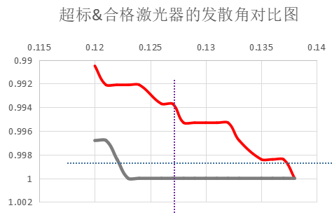 圖 8 30kW激光器主動控制前后,超標(紅色)和合格(灰色)發散角對比