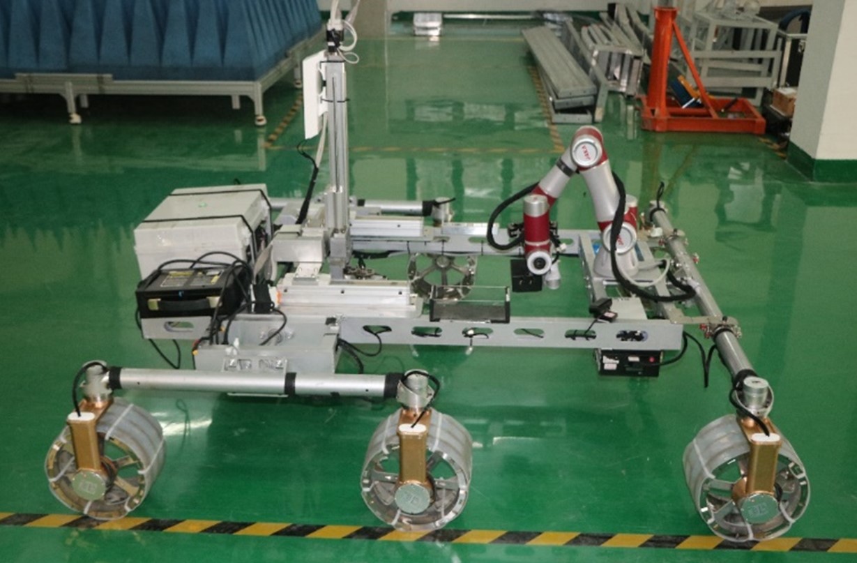 針對FAST表面復雜的維護環境,項目組突破了大坡度特殊表面全向移動、復雜環境下三維測量、非結構化環境下異形螺栓自主旋擰等技術難題,完成了靶標維護機器人的研制。機器人系統整體上由靶標維護執行系統、全向運動平臺和導航系統組成,能夠進行反射面全向行走、靶標位姿的精確三維測量、舊靶標拆卸抓取、新靶標裝配擰緊等操作,可自主完成靶標的更換和清洗任務,開展全自動的靶標維護工作。