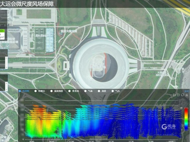 “點(diǎn)燃主火炬時(shí)需要知道場(chǎng)內(nèi)風(fēng)速的大小。”“我們非常關(guān)注冠頂?shù)娘L(fēng)速和風(fēng)向,想知道有形狀的焰火在燃放時(shí)能不能達(dá)到預(yù)期效果。”“場(chǎng)館周邊地區(qū)的霧霾、降雨等氣象條件將對(duì)交通產(chǎn)生什么影響?”……在賽事風(fēng)險(xiǎn)管理的調(diào)度例會(huì)上,工作人員對(duì)大運(yùn)會(huì)期間的氣象信息提出了明確的需求,并重點(diǎn)關(guān)注極端天氣監(jiān)測(cè)預(yù)警問(wèn)題,以避免對(duì)開幕式演出儀式及賽事的正常進(jìn)行產(chǎn)生影響。為保障開閉幕式及主場(chǎng)館賽事活動(dòng)的順利進(jìn)行,鐳測(cè)創(chuàng)芯提供了多部風(fēng)廓線及三維掃描型激光雷達(dá),開展了氣象保障服務(wù),實(shí)現(xiàn)了場(chǎng)館內(nèi)外高、中、低垂直梯度場(chǎng)的三維風(fēng)場(chǎng)數(shù)據(jù)監(jiān)測(cè),為周邊的微尺度氣象條件分析提供了裝備支撐。