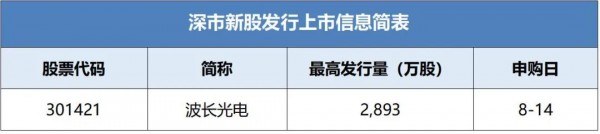 波長光電擬首次公開發行2893.00萬股,占發行后總股本比例25%;發行后總股本為1.16億股。初步詢價日期為2023年8月8日,申購日期為2023年8月14日。